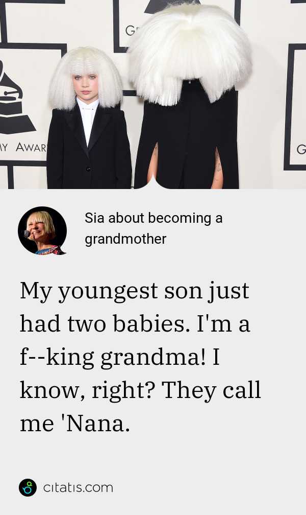 Sia Kate Isobelle Furler / Born 18 december 1975) is an australian singer, songwriter, voice actress and director.